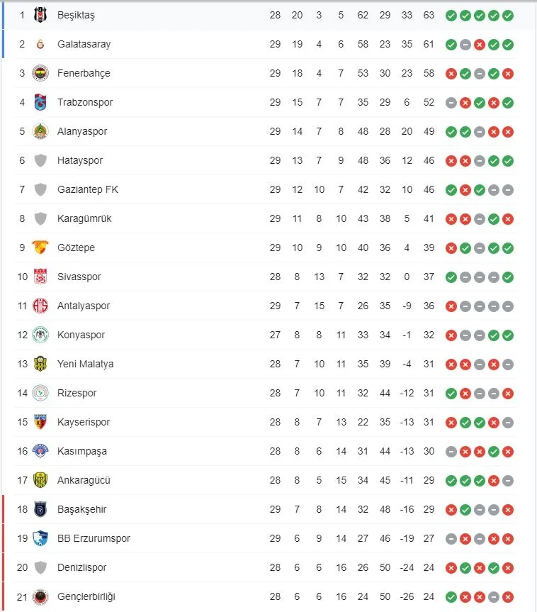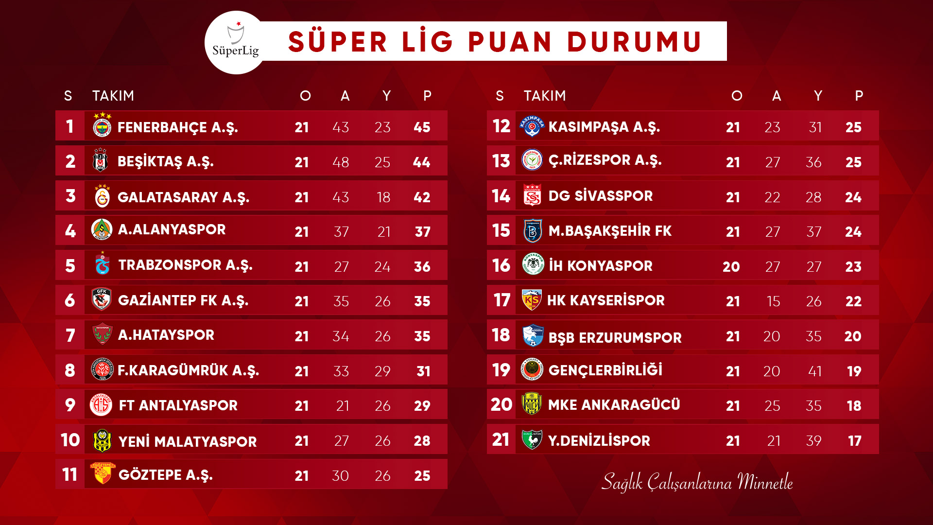 1BEŞİKTAŞ 39 25 6 8 87 43 44 81. Süper Ligde tarihi sıralama. Haberler Spor Haberleri Futbol Haberleri Süper Lig Puan Durumu 2021 - Süper Lig puan durumu sıralama tablosu ve 29.